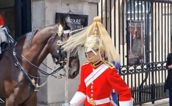 KING’S GUARD PRESSES EMERGENCY BUZZER FOR SERIOUS HELP At Horse Guards Parade, tension rose when …