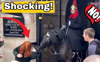 Royal King’s Guard Horse BITES and DRAGS Tourist! At Horse Guards Parade, a shocking moment …