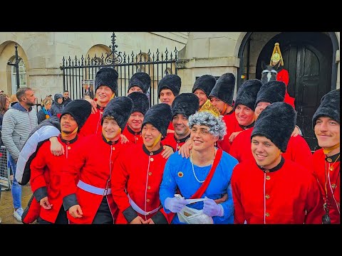 GROUP of Guards make the King’s Guard LAUGH when they visit Horse Guards A visiting …